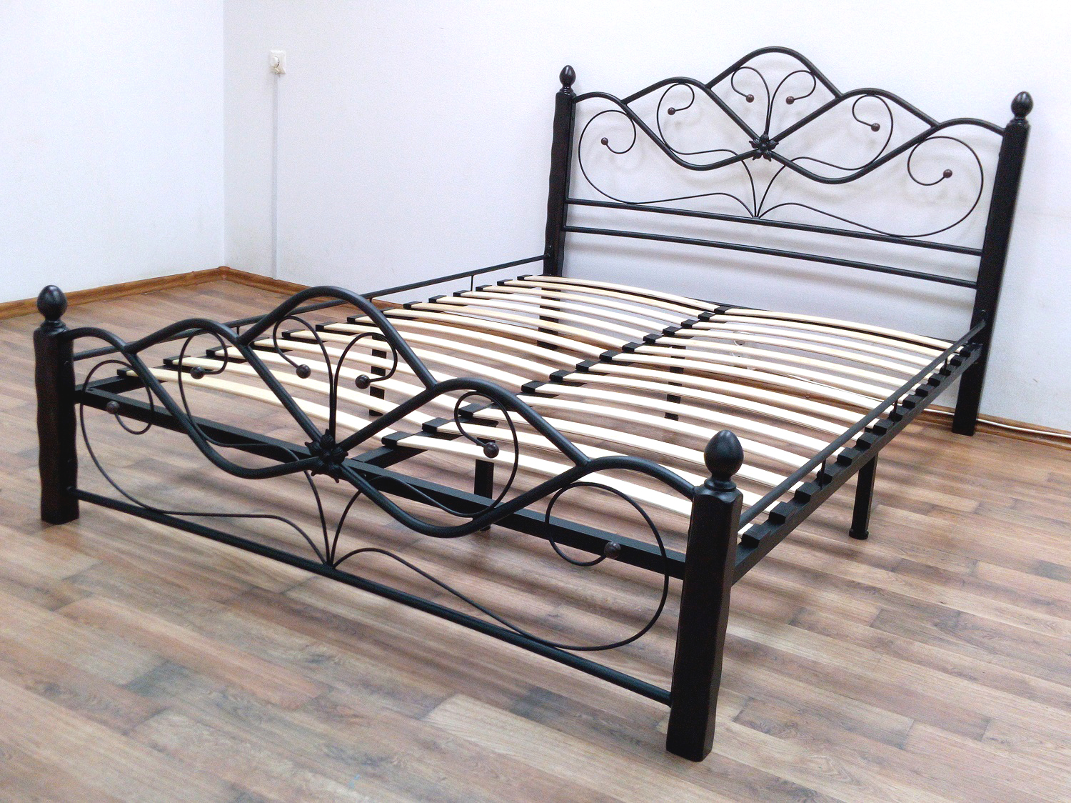 - Тип кровати с элементами ковки и массива